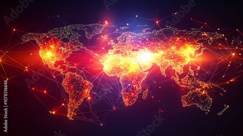 Conceptual image of a global network with business nodes, showcasing collaboration among human resources worldwide across various platforms