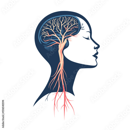 Conceptual Mind Portrait with Tree Brain Design of Cognitive Process and Mental Growth and Anatomical Silhouette in White Background