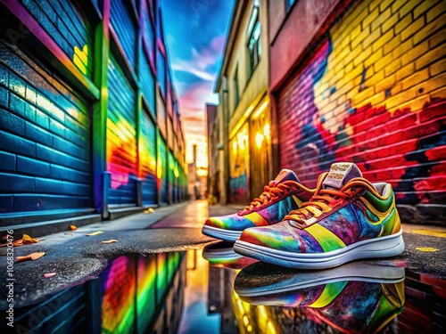 Conceptual Photography of Sneakers: Creative Artistic Expression with Vibrant Colors and Unique Designs in Urban Environments for Dynamic Fashion Imagery