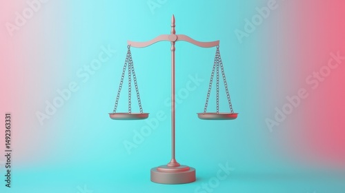 Conceptual representation of justice symbolized by a balanced scale against a colorful gradient background