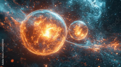 Conceptual visualization of quantum entanglement with glowing particles connected by energy strands in a futuristic design