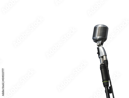 concert retro microphone on stand on white background, isolate