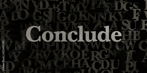 Conclude - Stock image of 3D rendered metallic typeset headline illustration. Can be used for an online banner ad or a print postcard.