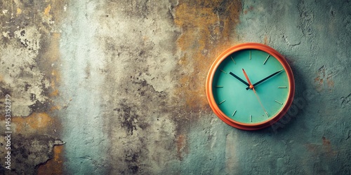 Concrete Wall Clock: Minimalist Timepiece on Rustic Background - Stock Photo