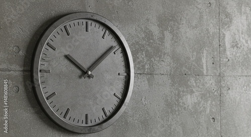 Concrete Wall Clock Showing Time Against Rough Gray Surface