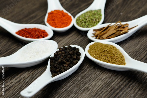 condimentos varios en cucharas chinas