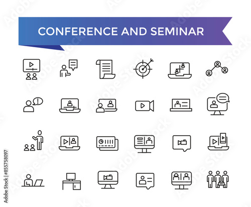 Conference and seminar Icon set with editable stroke collection for web and ui. Line icons pack. Vector illustration.