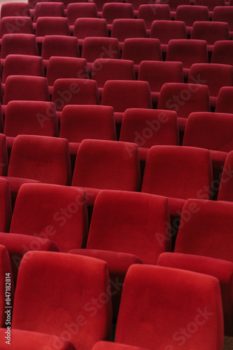 Conference room with empty red seats