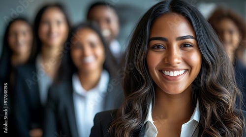 Confident Businesswoman Smiling in Front of a Diverse Team of Professionals