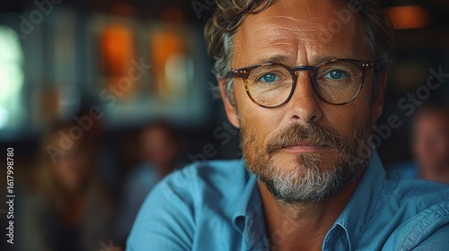 Confident Mature Man with Beard and Eyeglasses in an Indoor Professional Setting