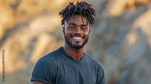 Confident Person with Warm Smile Standing Against Natural Background, Capturing a Moment of Joy and Positivity in Outdoor Setting