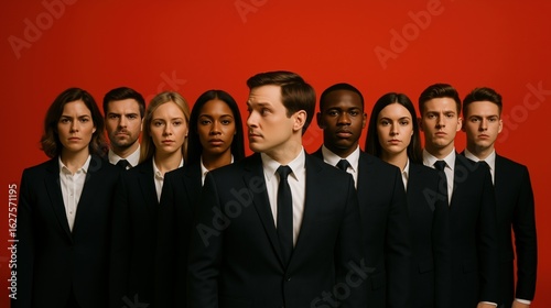 Conformity Effect, Business Team Standing Against a Red Background, Conformity & Group Identity, Corporate Culture, Social Psychology, Leadership, Organizational Behavior, HR, Sociology, Ethics