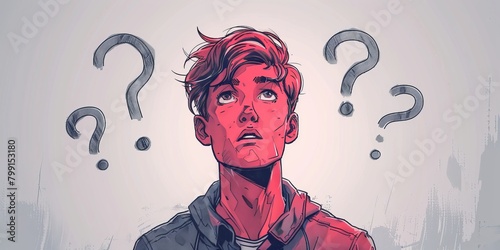 confused man thinking of problem solution. puzzled and reflective guy, question mark