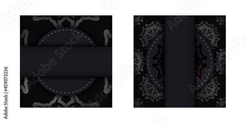 Congratulatory Brochure in black color with a mandala in gold ornament is ready for printing.