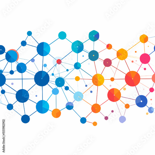 Connected Dots and Lines in Gradient of Blue and Orange Forming a Network on White Background