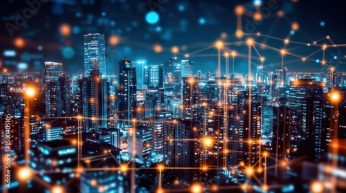 Connected Metropolis: A Futuristic Cityscape with Intertwined Digital Networks