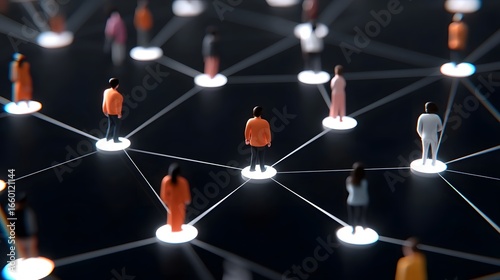 Connected network of digital silhouettes representing technology and communication.