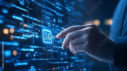Connecting with the digital realm, a fingertip's touch on luminous interface
