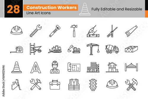 Construction Icons Black and White Line Art Style Simple Clean and Modern Design for Website or App
