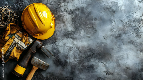 Construction Tools on a Gray Background