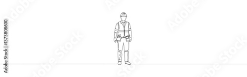 Construction worker continuous one line drawing. Building architecture business concept in simple linear style. Vector illustration.