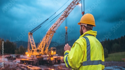 Construction Worker Crane Site Safety Industrial Project