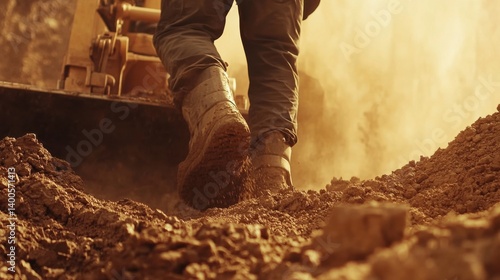 Construction worker operating a bulldozer for site leveling. Featuring power and precision