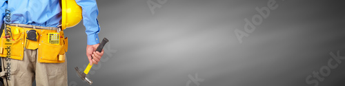 Construction worker with helmet and hammer.