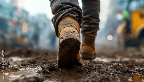 Construction Workers Teamwork Securing Building Foundation, Mud, Boots, Safety, Construction Site, Hard Work, Teamwork, Collaboration, Building, Foundation, Concrete, Steel, Heavy Machinery