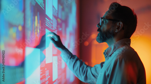 Consultant using a projector for visual presentations, clear and impactful, bottom third copy space