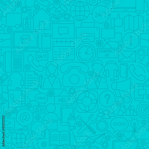 Contact Us Line Tile Pattern. Vector Illustration of Outline Seamless Background. Business Communication.