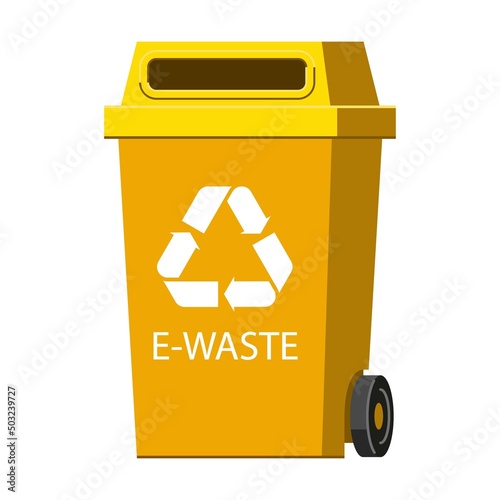container for electronic waste. Garbage recycle bin. Vector illustration of trash container classification. Cartoon trash for dustbins isolated on white