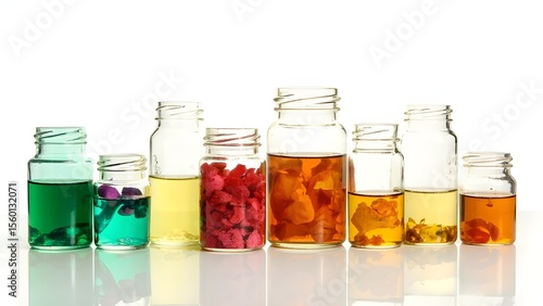 containers filled with medicine set against a white backdrop