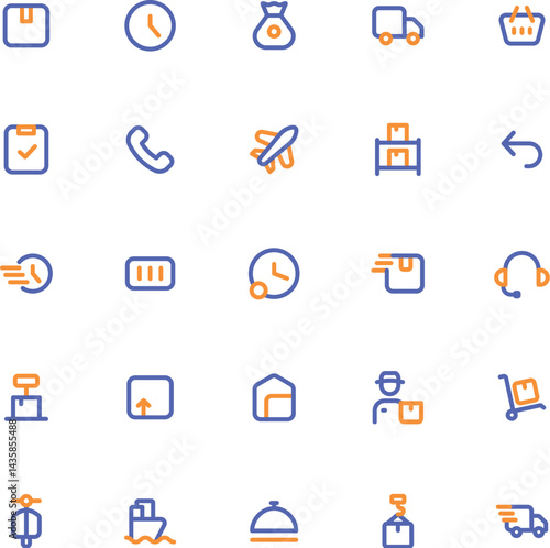 Contains blue and orange icons of delivery services. Suitable for websites, apps, and social media posts related to shipping and logistics