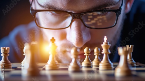 Contemplation A chess player strategizing their next move in intense contemplation.