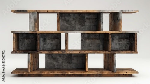 Contemporary bookcase with open shelving, isolated on a white studio background