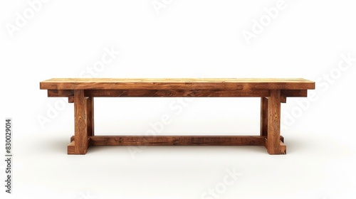 Contemporary dining bench with a wooden seat, isolated on a white studio background