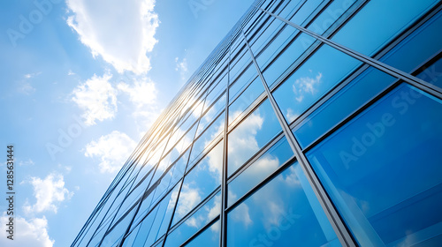Contemporary Glass Building Facade with Blue Sky and Clouds Reflection : Generative AI