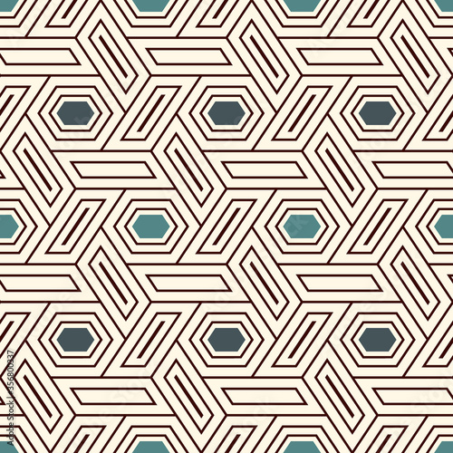 Contemporary honeycomb geometric pattern. Repeated hexagon ornament. Modern mosaic tiles background. Seamless surface abstract design. Geo wallpaper. Digital paper, textile print. Vector illustration