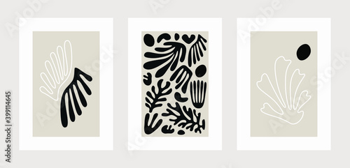 Contemporary poster set. Abstract matisse inspired floral collage, organic shapes, hand drawn wall decor. Vector illustration