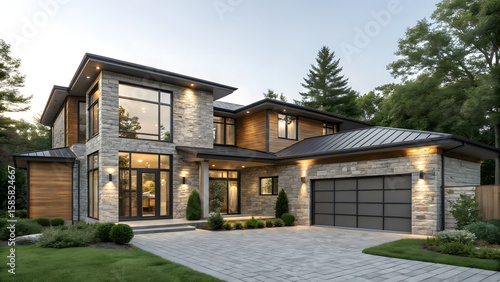 Contemporary residential architecture with clean lines and neutral tones in daylight