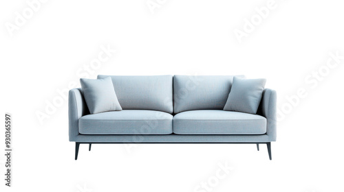 Contemporary Sofa with Clean Lines and Matching Cushions isolated on white background, PNG file, graphic resources