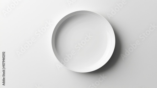 Contemporary white plate on a white surface, top-down perspective, sharp edges and subtle texture details, ultra-clean minimalism