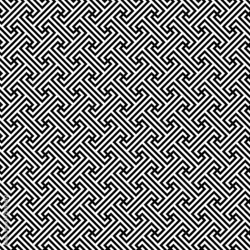 continuous diagonal meander. classic greek fret repeated motif. vector seamless pattern. simple black and gold repetitive background. geometric shapes. textile paint. fabric swatch. wrapping paper
