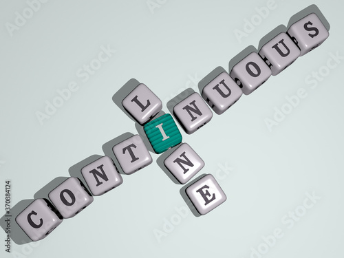 continuous line crossword by cubic dice letters. 3D illustration. background and drawing