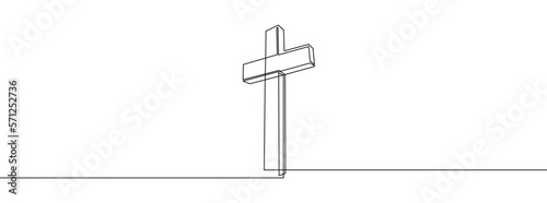 Continuous line drawing of christian cross. Religious cross one line icon. One line drawing background. Vector illustration. Cross black icon