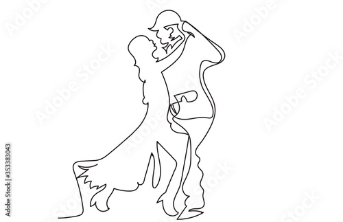 continuous line drawing of happy couple dancing together