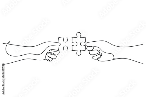 Continuous Line Drawing of Puzzle Pieces in Hands – Problem Solving Illustration