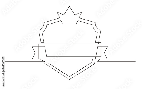 continuous line drawing vector illustration with FULLY EDITABLE STROKE of ribbon shield crown frame design 1
