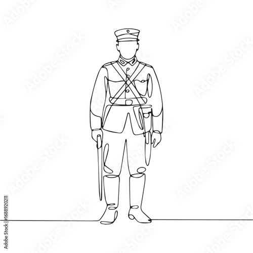 Continuous line of soldier .Single one line art of soldier , One continuous line illustration of an soldier isolated on white background.